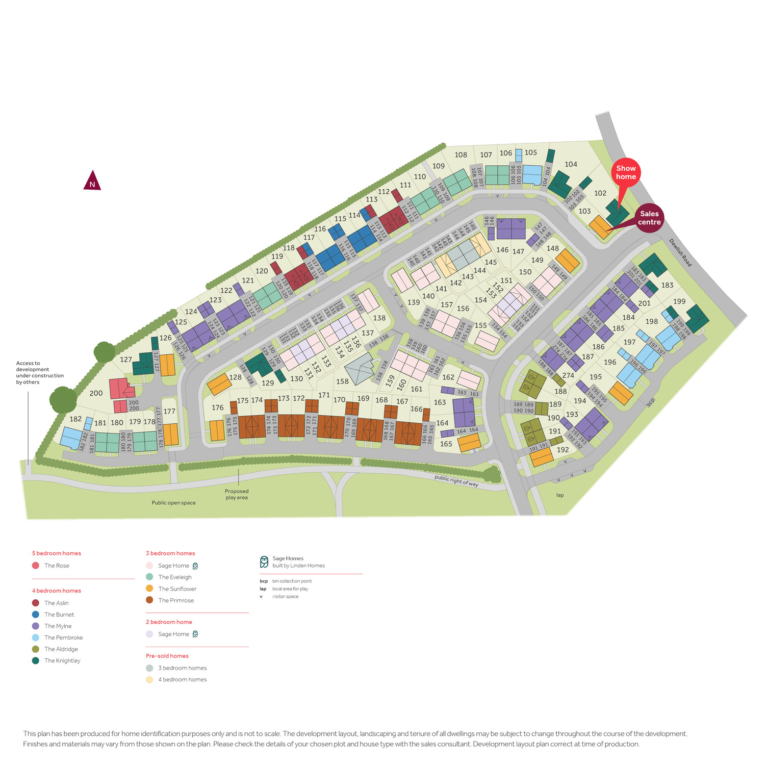 View Opening Hours*64% energy saving Data from the Home Builders Federation and YouGov. 5-star home rating based on the independent annual home owner survey conducted by the Home Builders Federation. The site plan which can be found on this page, has been produced for home identification purposes only and is not to scale. The development layout, landscaping and tenure of all dwellings may be subject to change throughout the course of the development. Finishes and materials may vary from those shown on the plan. Please check the details of your chosen plot and house type with the sales consultant. Development layout plan correct at time of production.