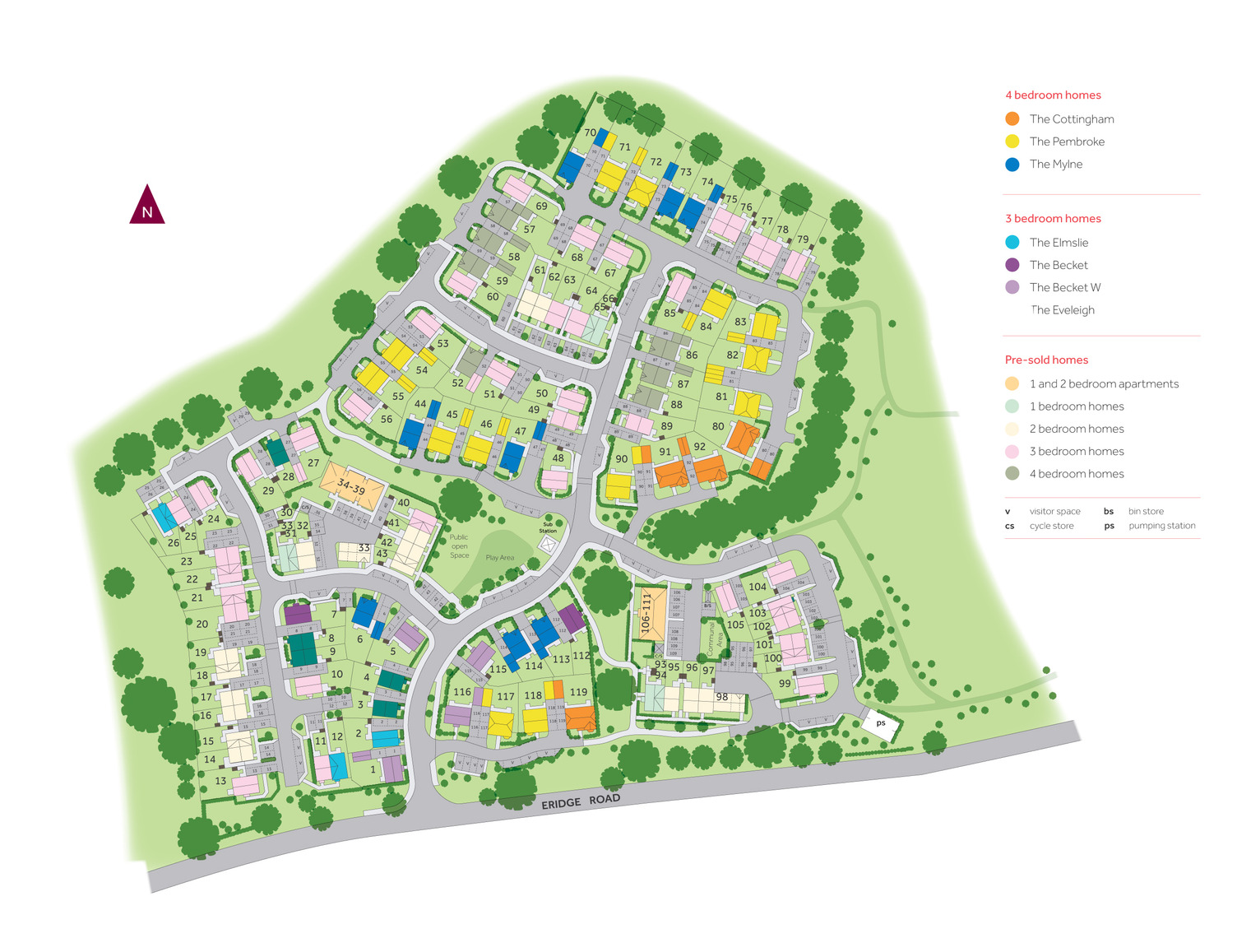 View Opening HoursThe site plan which can be found on this page, has been produced for home identification purposes only and is not to scale. The development layout, landscaping and tenure of all dwellings may be subject to change throughout the course of the development. Finishes and materials may vary from those shown on the plan. Please check the details of your chosen plot and house type with the sales consultant. Development layout plan correct at time of production.