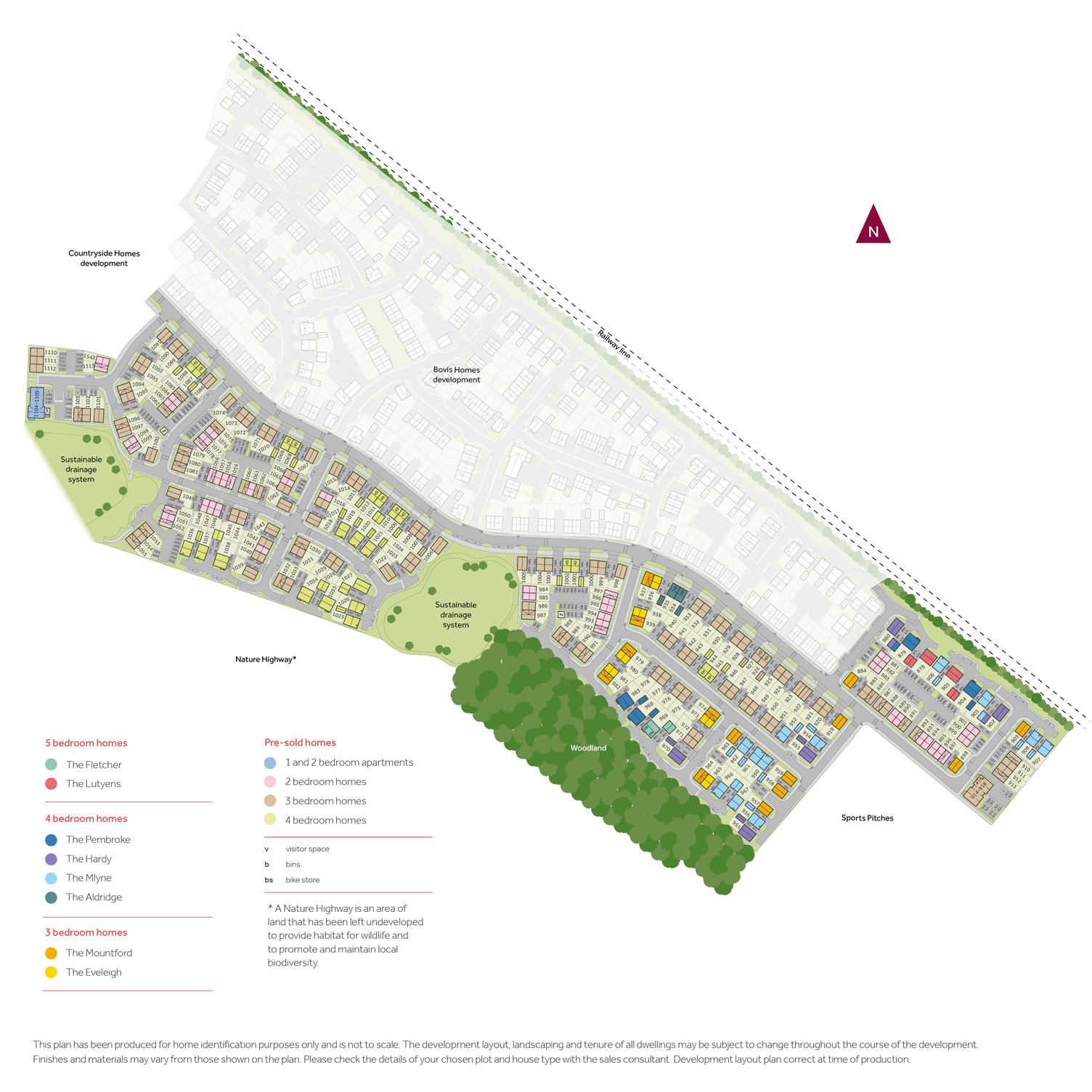 View Opening HoursThe site plan which can be found on this page, has been produced for home identification purposes only and is not to scale. The development layout, landscaping and tenure of all dwellings may be subject to change throughout the course of the development. Finishes and materials may vary from those shown on the plan. Please check the details of your chosen plot and house type with the sales consultant. Development layout plan correct at time of production.