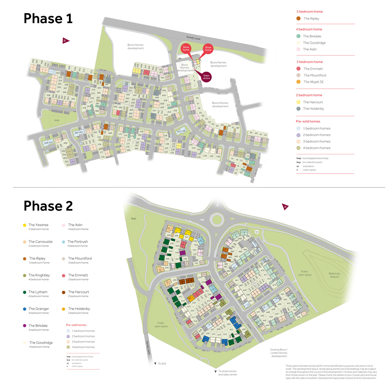 The site plan which can be found on this page, has been produced for home identification purposes only and is not to scale. The development layout, landscaping and tenure of all dwellings may be subject to change throughout the course of the development. Finishes and materials may vary from those shown on the plan. Please check the details of your chosen plot and house type with the sales consultant. Development layout plan correct at time of production.